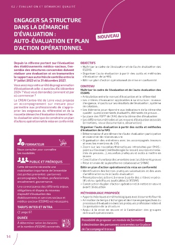 des établissements médico-sociaux, l’en- > Maîtriser le cadre de l’évaluation et de l’auto-évaluation des
